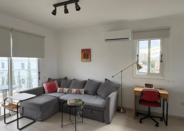 Cozy Central Apt With City Views Nicosia med 1 sovrum erbjuder närhet till sevärdheter som Church of St. George Athalassas, som ligger mindre än 5 minuters promenad bort. Wi Fi erbjuds för både affärs- och fritidsaktiviteter.
